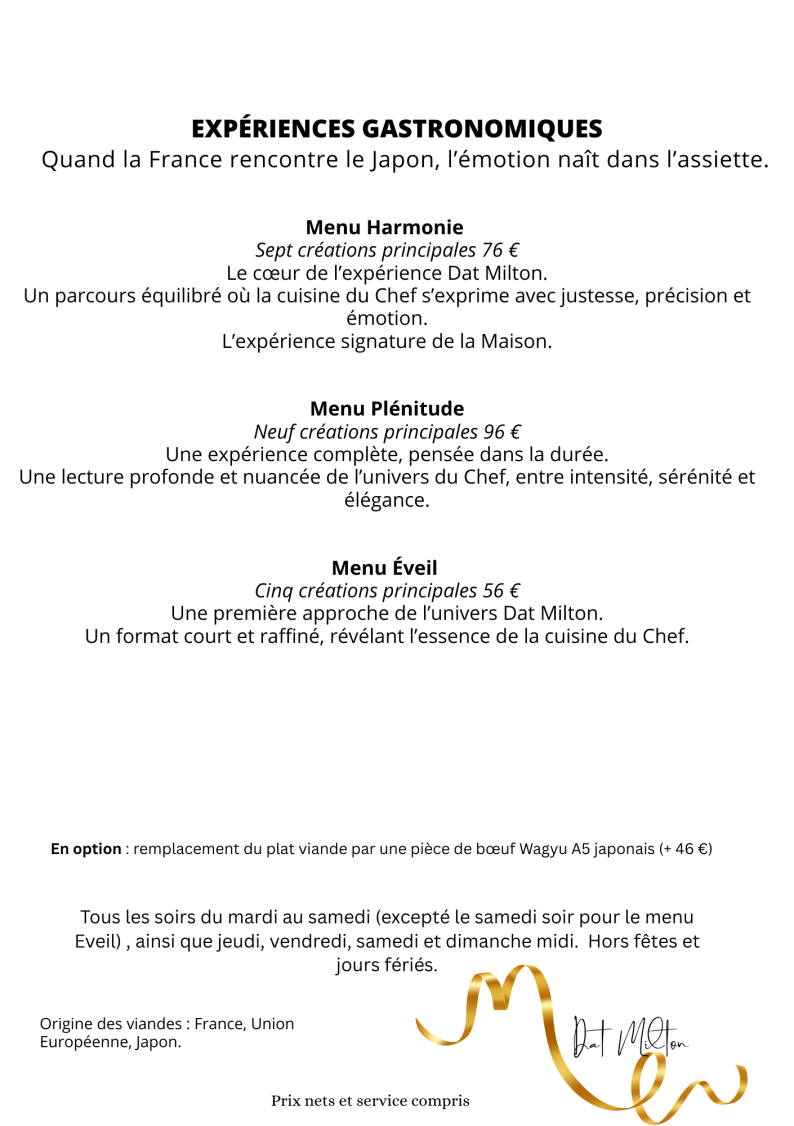 🔁 Pour garantir une expérience optimale, un seul type de menu gastronomique devra être choisi pour l’ensemble de la table.