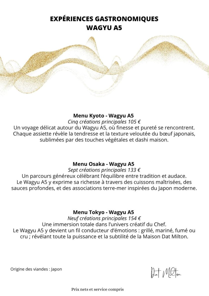 Les menus Wagyu A5 sont proposés uniquement le soir, ainsi que le dimanche midi.